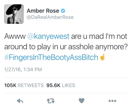 January 27, 2016January 27, 2016 Amber Rose Comments Amber Rose just took this whole beef LEFT! Update: Kanye has taken down the tweets! Beef over?? Share this: Share on X (Opens in new window) X Share on Facebook (Opens in new window) Facebook Like Loading...