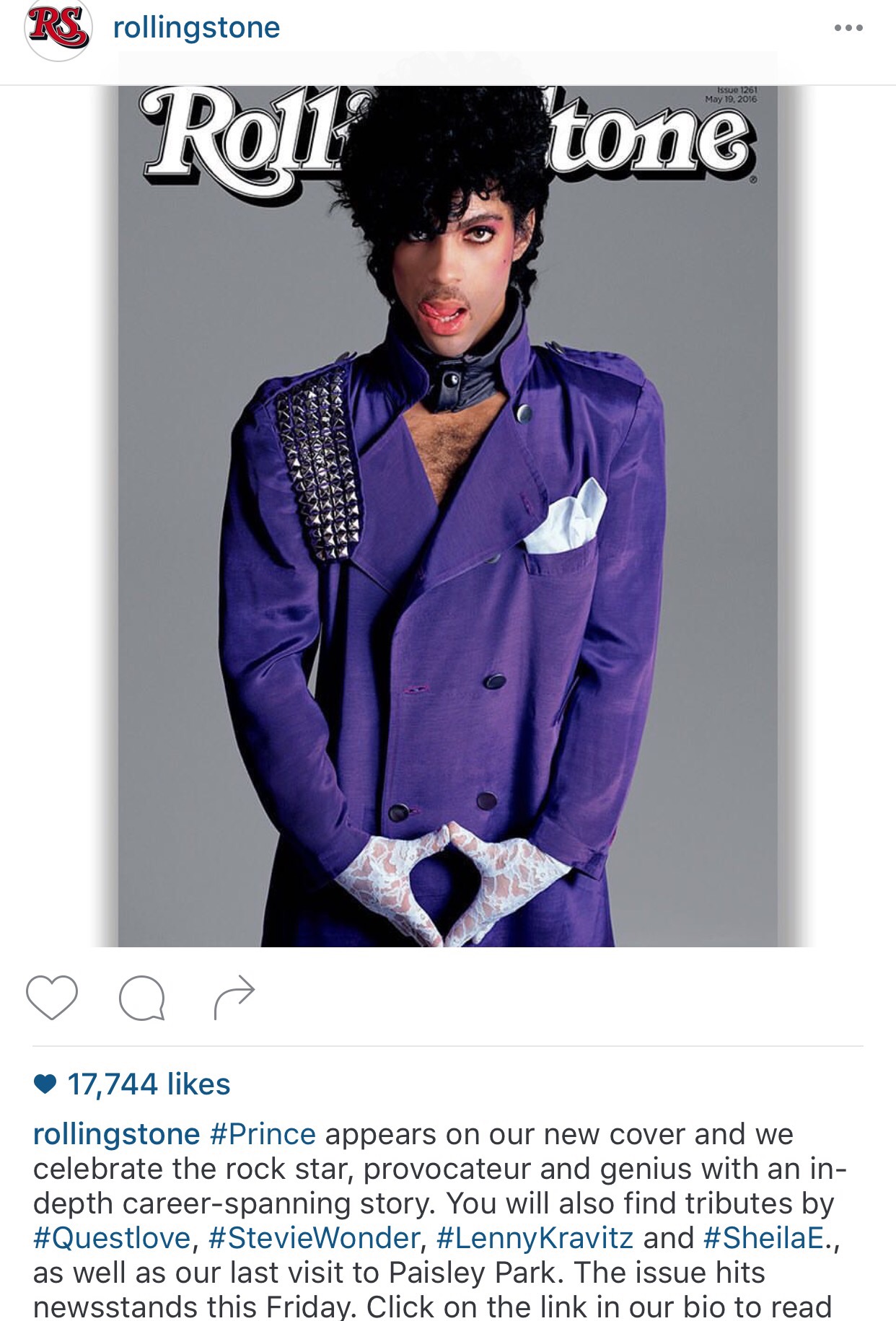 Kudos Rolling Stone! The magazine is paying tribute to the LEGENDARY Prince in their next issue! According to their Instagram account, friends and performers pay tribute to the rock star and a visit to Paisley Park. You can pick up your issue this Friday.